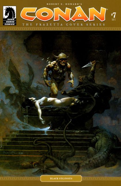 Timothy Truman, Tomas Giorello, and Jose Villarrubia adapt Robert E. Howard's powerful 'Black Colossus' short story. Conan joins a roving army of mercenaries and sets off on what will be one of his bloodiest battles ever, when the human forces of Amalric clash with the demonic hordes of Natohk over the fate of a besieged city! This seventh issue in the Conan: The Frazetta Cover Series run features Frazetta's iconic Conan painting 'Sacrifice'-which is one of the few Frazetta paintings to directly depict a scene from one of Howard's stories. Ride alongside the Cimmerian as he battles through hordes of bloodthirsty enemies to save a beautiful princess from an evil wizard.