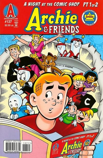 (W/A) Fernando Ruiz 'Cosmic Cosmosis.' Part one of a two-part story that reintroduces some of the most memorable characters archie ever published! Working at the Pep Comics shop to get a discount on comics and a place to store his collection, Chuck is visited by his friends as he bags and boards. Suddenly, glowing meteors from the MLJ Nebula rain down in Riverdale, including one that crashes into the shop and morphs into a door to other dimensions! This cosmic portal leads to a world that Chuck, Archie and his friends have only ever seen in comics - a world of talking ducks and bears, super-powered heroes and oddball beings from other planets. It doesn't take them long to realize they are in the presence of a veritable 'who's who' of some of the greatest comic book characters ever published by Archie and its earlier incarnation, MLJ Comics: Captain Sprocket, Cosmo the Merry Martian, Squoimy the Woim, Gloomy Gus, Judge Owl, Ginger, Suzie and more! The trouble is, now that the 'fantasy world' has invaded the 'real world,' the 'fictional' characters seek as much a taste of reality as possible: Wilbur and Seymour want to meet 'real' girls to date, Pat the Brat realizes there's a whole new potential audience to pull pranks on, Cubby the Bear wants to see how earth bears live, and more. On top of it all, Super Duck and Reggie get into a no-holds-barred shouting match! Realizing the veritable 'Pandora's Box' situation they're in, Archie decides it would best for the comic book characters to go back through the portal to return to their own worlds, but the characters have other plans. Namely, they plan to stay indefinitely!