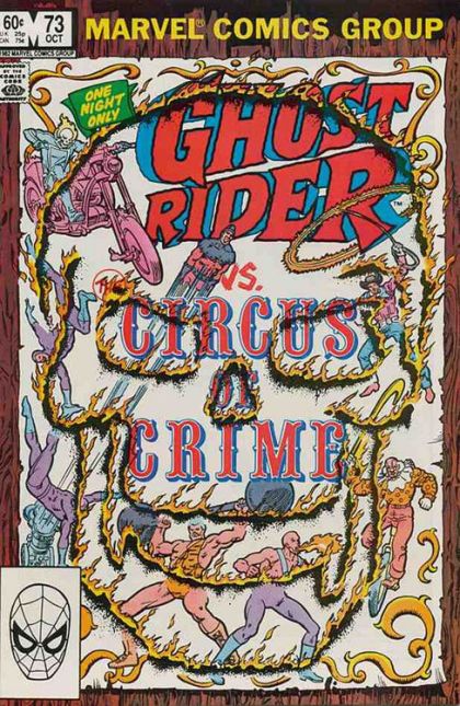 The Clown once again leads the Circus of Crime, driven back to crime by the need to pay his father's medical bills - his father, who was injured BY the Circus of Crime! Sneaking up to see where Eliot Franklin had gone, Johnny learned he was the Clown - just in time to be kayoed by the Strongman! Now, the Circus means to take over the Quentin Carnival, and with Johnny unconscious and the Ghost Rider trapped inside him, they might just do it! Clown asks for a moment alone to convince Quentin, who then tells the carnival that... he's not going to give in! And Clown agrees! He knows who hurt his father, and he thinks the carnival can take the Circus! And maybe they can! Several Circus members fall... Meanwhile, despite goading, Johnny refuses to set the Rider free - until he sees the carnival on fire, and jumps to the wrong conclusion! Ghost Rider interrupts a battle between Fire-Eater and Clown, forcing Fire-Eater to flee. Ghost Rider does not care that Clown was trying to stop the Circus; his soul-searing cold flame forces Clown to relive his life of failure again and again, a personal hell from which there is no escape! But Red Fowler appears, and makes Johnny see the truth. Once again, Ghost Rider is forced back inside, but for how long?