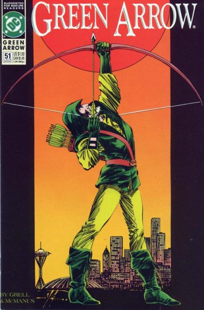 Cover art by Mike Grell. Homecoming starring Green Arrow, script by Mike Grell, art by Shawn McManus; After a year apart, Ollie and Dinah get reacquainted. Suggested for Mature Readers. 36 pgs. $1.50. Cover price $1.50.