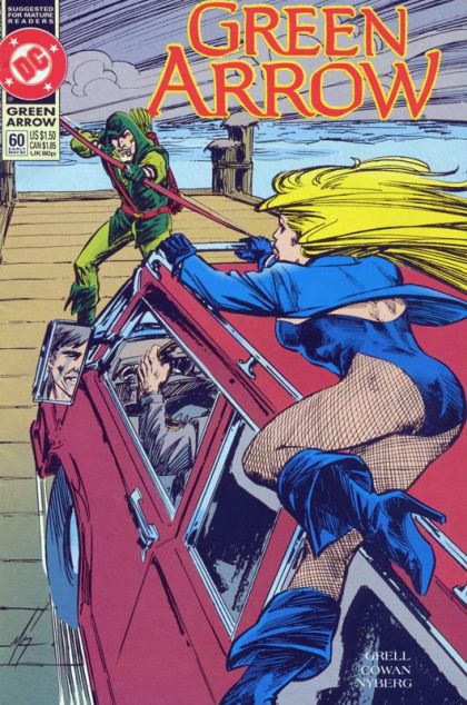 "Predator," part 2 of 2. A freed rapist is loose on the streets of Seattle and Green Arrow is determined to find him...and Black Canary is equally committed to stopping the culprit...whatever the cost! Written by Mike Grell, with art by Rick Hoberg and John Nyberg. Cover by Grell. Suggested for Mature Readers. New Format. Cover price $1.50.