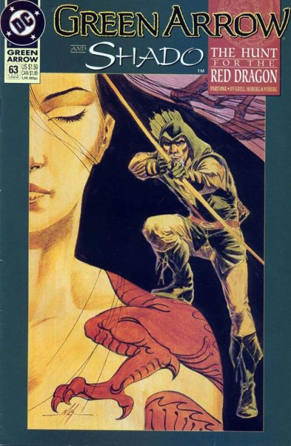 Green Arrow is no longer labelled 'Suggested for Mature Readers.' Part 1 of the 4-part "The Hunt for the Red Dragon": Inheriting his mentor's longbow leads Green Arrow to a legacy of murder, degradation and extortion. Trying to rectify these crimes, Ollie learns the victim may have been Shado's grandfather. Written by Mike Grell, with art by Rick Hoberg and John Nyberg. Cover by Grell. New Format. Cover price $1.50.