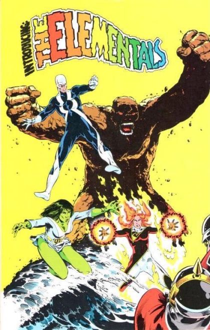 Wrap around cover by Mike Golden and Mike Gustovich. "An Echo of Thunder." 43 pages. Story by Bill Loebs. Pencils by Bill Reinhold. Inks by Jeff Dee and Bill Anderson. How about that, an annual where the title group doesn't even appear on the cover. Fortunately they are inside, where they team up with the Thunder Agents as they endeavor to stop the Nazi Von Geist from using his army of super soldiers to take over the United Nations. This story continues plot elements from the Noble comics Justice Machine series. Sub plots were to be continued in Texas Comics Justice Machine #1. This issue was never published, but the material was eventually published in 1990 as the Justice Machine Summer Spectacular by Innovation. "The shape of things to come." 20 pages. Story and pencils by Bill Willingham. Inks by Bill Anderson. 1st appearance of The Elementals. Shapeshifter is tasked by her employer to find out everything she can about the new group The Elementals. And what better way to determine their abilities than to attack them! 64 pages. Full color.