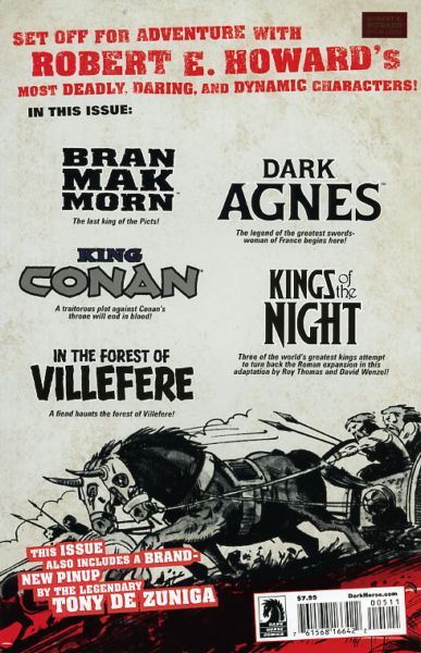 Howard Chaykin (W/A), Paul Tobin (W), Ian Edginton (W), Steve Niles (W), Francesco Francavilla (A/C), Richard Pace (A), Christopher Mitten (A), Jesus Aburto (C), Michelle Madsen (C), and Raymond Swanland (Cover) The legendary Howard Chaykin writes and draws a brand-new King Conan tale in Robert E. Howard's Savage Sword #5! Steve Niles teams with his Criminal Macabre partner Christopher Mitten to adapt one of Howard's exciting and horrific werewolf stories. Ian Edginton and Richard Pace adapt the Bran Mak Morn yarn 'Men of the Shadows' and Paul Tobin and Francesco Francavilla bring the fan-favorite character Dark Agnes back into the fold with their adaptation of 'Sword Woman'!