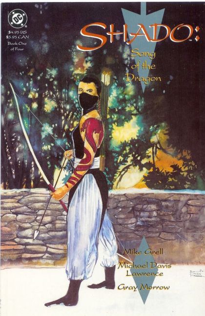 Shado is one woman against the Yakuza. Her life and that of her child, Green Arrow's child, is on the line. Shado, the woman warrior, was introduced in the miniseries GREEN ARROW: THE LONGBOW HUNTERS and has been an integral part of the ongoing GREEN ARROW series. Now, she's the center of the action! Green Arrow appears in flashbacks of this miniseries, tying it to the continuity of the regular series and adding to the complexity of the relationship between Shado and Oliver Queen. It is the ruthless Japanese crime syndicate that Shado must fight, with an ancient and deadly sword at the heart of the combat. The sword, a tremendous symbol of power, is brought to Shado by a World War II veteran who wants to return it to its rightful owner. The Yakuza claim the weapon, and they will stop at nothing to get it. Shado is driven to help the old soldier, and the two confront danger at every step. Written by Mike Grell, with pencils by Michael Davis-Lawrence, inks by Gray Morrow and painted interiors and covers by Davis-Lawrence. Suggested for Mature Readers. Prestige Format. Cover price $4.95.