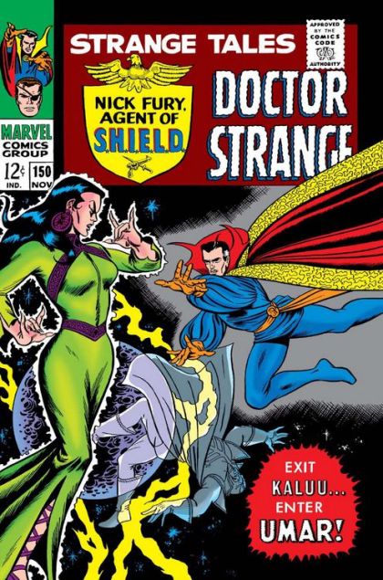 "The Conquest of Kaluu!" - Strange and the Ancient One travel into the past to retreive the book of the Vishanti, in hopes that it will provide a defense against Kaluu's attacks. Their defense proves successful, but the threat of Kaluu is nothing compared to the oncoming threat of Umar.