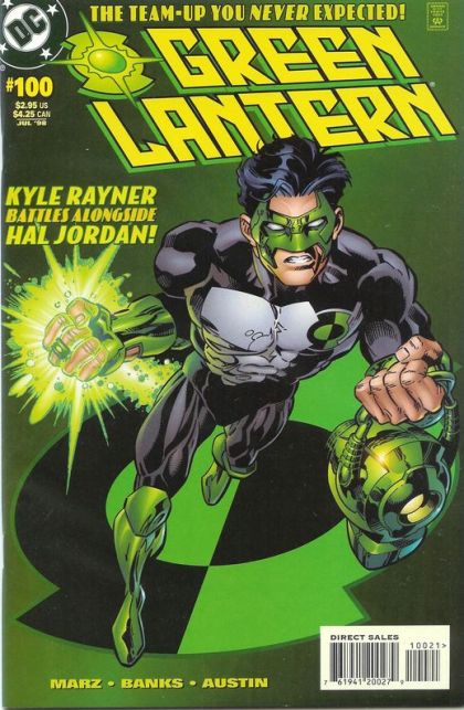 Kyle has landed in his past, just in time to see Hal Jordan fighting against Sinestro. With Kyle's ring in action, the rules have changed, and Sinestro is easier to handle. Of course, the whole "not being in his own time" thing is still a problem.