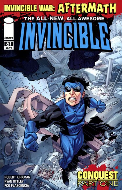 INVINCIBLE WAR: AFTERMATH! The planet is in ruins. Everything has changed, the world's superheroes are in the hospital or dead. Invincible is left to rebuild - but now he must face his most deadly and powerful adversary yet. Who... or what is CONQUEST?