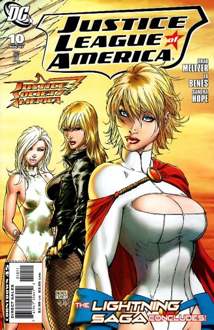 The Legionnaires briefly lose the Justice League and Society and position themselves in various places across the world. The JLA and JSA, however, are quick to track them down and try to persuade them from continuing their plan to sacrifice one of their lives to bring back someone they assume to be Lightning Lad.Batman and Green Lanter, in separate locations, realise they have visited them before - for Batman it was during the Crisis On Infinite Earths when Barry Allen (Flash II) appeared before him as a vision; for Green Lantern, it was the lab where Barry received his powers.Despite the heroes' best efforts, the Legionnaires call down the lightning and, to the surprise of many, bring back Wally West (Flash III) along with his wife Linda and their now teenage children who had all been missing since Infinite Crisis.The Legionnaire's teleport back to Superman's Fortress and use portals to return to their home. Before Karate Kid enters, however, he hands one of them his lightning rod and is then warned not to enter the portal by a shadowed figure.The League and Society greet Wally while in the future, possibly in another universe, Brainiac is given Karate Kid's lightning rod that appears to hold someone's spirit.