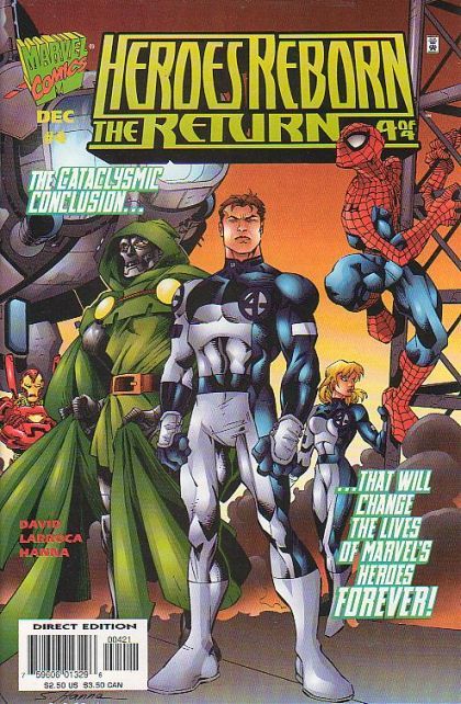 The sense-shattering conclusion! How will the characters of the Heroes Reborn universe cross over to the Marvel Universe - and who won't survive the journey? It all leads to the event all of comicdom is waiting for: the launches of Fantastic Four #1, Iron Man #1, Avengers #1 and Captain America #1!