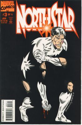 Cover by Dario Carrasco, Jr. and Mark McKenna. The Quick and the Dead!, script by Simon Furman, art by Dario Carrasco, Jr., Tim Dzon, and Danny Bulanadi; Northstar battles circus performers in Russia, but he knows he cant harm them since they are attacking against their will; he recalls days in the circus where he was a terrorist of sorts , fighting for the separation of Quebec from Canada; Weapon P.R.I.M.E. confronts Northstar. 36 pgs., full color. $1.75. Cover price $1.75.