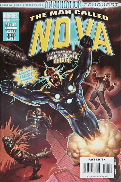 Richard Rider, having escaped the Vore in "Nova, Vol. 4 #10," awakens 43 years in the future. The Transmode virus resurges once more, right when the rebuilt Nova Corps is about to mount a final assault to free Earth. Due to his illness, Nova is unable to join the battle.