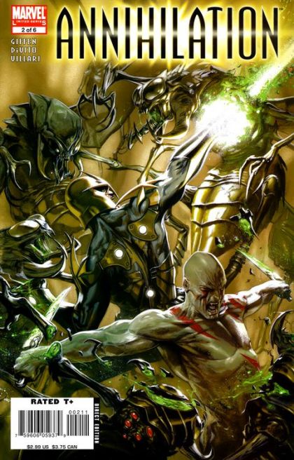 The alliance that has arisen to stand against Annihilus' invasion from the Negative Zone is having a rough time of it. Firelord's apparent sacrifice has bought them a brief respite from the fighting, and has captured one of Annihilus' Queens. But even the respite is filled with strife as the Kree in the alliance refuse to stand beside Ronan, who now stands accused by House Fyero. The tension is heightened by the arrival of Praxagoria, bringing the body of the Super-Skrull and the news brought by Phyla-Vell to Drax.But when Annihilation Wave forces teleport directly into their camp, chaos erupts.
