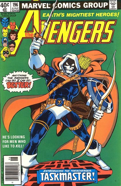 The Taskmaster has the three shrinking heroes tied up and too endangered to shrink. Fortunately, Scott was able to signal ants for help before his helmet was removed, and the rest of the Avengers come running. None are prepared for the abilities of the Taskmaster, though.