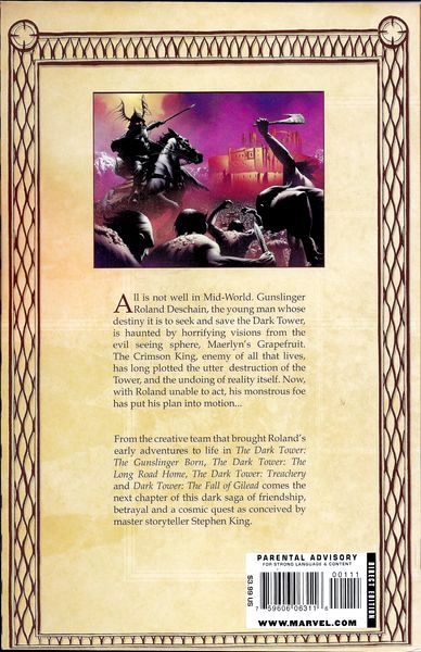 John Farson's army has crushed the city of Gilead, and the seat of power for the Gunslingers who've maintained law and order since the time of Arthur Eld. Now, the last handful of Gunslingers are led by their dinh Roland Deschain away from the smoldering ruin.