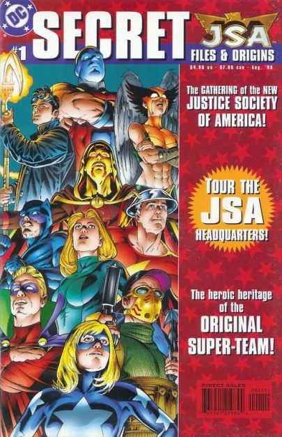 WRITTEN BY JAMES ROBINSON, DAVID S. GOYER AND VARIOUS; ART BY SCOTT BENEFIEL, MARK PROPST, AND VARIOUS; COVER BY STEPHEN SADOWSKI AND MICHAEL BAIR A week before the all-new JSA monthly debuts, get the inside story on how the latest incarnation of the original super-team came together for the very first time in an exciting one-shot! Regular JSA writers James Robinson and David S. Goyer join the SENSATION COMICS art team of Scott Benefiel and Mark Propst to present the team's first gathering, along with the final fate of one of the Justice Society's original members! Plus: Black Canary meets Fate (written by Steven Grant with art by Eddy Newell); and Sentinel spends some time with the new Star-Spangled Kid (written by Ron Marz with art by Chris Weston). Plus, a look at the JSA's headquarters; and profile pages on the new lineup and some new foes, with art by Roger Robinson, Darryl Banks, Scott Benefiel, Jason Pearson, Alex Maleev, Tom Mandrake, Eric Battle, and more! FC, 64 PG.$4.95" Secret Files Part 4 Cover price $4.95.