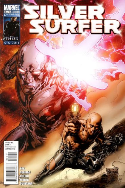 Written by Greg Pak Pencils by Harvey Tolibao Cover by Carlo Pagulayan EVOLUTION REVELATION! The Silver Surfer has always served the greater good, but with Galactus' world-eating power at his fingertips, the High Evolutionary has his own ideas about the cosmic balance. A humbled Surfer will have to choose sides, and if he chooses poorly, the Earth is lost! The High Evolutionary's grand design is revealed in the continuation of the greatest cosmic tale ever told right here at home! Plus: Star-crossed romance! Which Marvel heroine claims the Surfer's heart -- and with what shocking results? 32 PGS./Rated T+