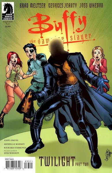 BUFFY THE VAMPIRE SLAYER #33: TWILIGHT part 2 (of 4) Brad Meltzer (W), Georges Jeanty (P/Cover), Andy Owens (I), Michelle Madsen (C), and Jo Chen (Cover) On sale Mar 3 FC, 40 pages $2.99 Ongoing Acclaimed novelist and comics writer Brad Meltzer (The Book of Lies, Identity Crisis) continues his pivotal story arc! The Slayer army has suffered heavy losses throughout Season Eight and faced all kinds of threats new and old, but the one mystery connecting it all has been the identity of the Big Bad: Twilight. In this issue, Buffy finally confronts Twilight one on one, setting the stage for Twilight's unmasking in Buffy #34! Brad Meltzer, series artist Georges Jeanty, and executive producer Joss Whedon up the stakes as Buffy's most epic season yet races to a climax! Buffy the Vampire Slayer? & ? 2009 Twentieth Century Fox Film Corporation. All rights reserved