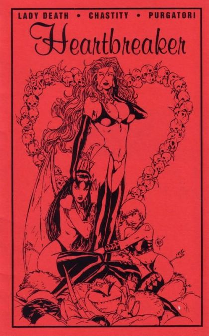 Broken hearts.... Bloody revenge! This self-contained one-shot fits in Lady Death continuity and is a great starting point for new readers. He's small, he's round, and he shoots arrows into your heart. Cupid, right? Wrong! This is the opposite of Eros ?? Sore ?? and he's the Cherub of Hate! Every black arrow fans all the little resentment, petty jealousies, and minor grievances you feel to infernos of murderous hate. So what happens with one of the arrows hits Lady Death? Wait until you see! Lady Death: Heartbreaker gets just plain nasty