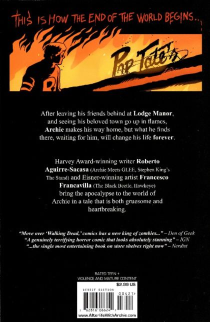 New Ongoing Series! 'Escape from Riverdale,' Part 4 [of 5]. With two more members of our beloved gang infected by the dreadful zombie-virus, Riverdale's one sanctuary - Lodge Mansion - has been compromised. The kids are left to make a significant decision - do they stay and fight or flee the only town they've ever known? Meanwhile, Archie makes a horrific discovery in his own home, one that may cost him his life! It's red-headed teen versus gruesomely undead canine in the latest chapter of this ground-breaking Teen+ series! Definitely not for all ages! Covers by Francesco Francavilla and Tim Seeley.