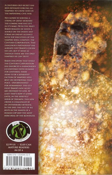 by John Brady, Roger Mincheff & Steve Perkins Baker's uneasy alliance with the Centuris is shattered by unthinkable betrayal, but even in its hour of triumph, mankind's legendary enemy falls prey to a traitorous heart! Finally, it is up to the policeman and one who long ago surrendered his humanity, to decide the ultimate fate of the Bloodless.