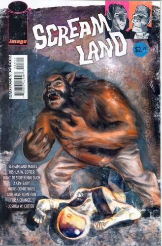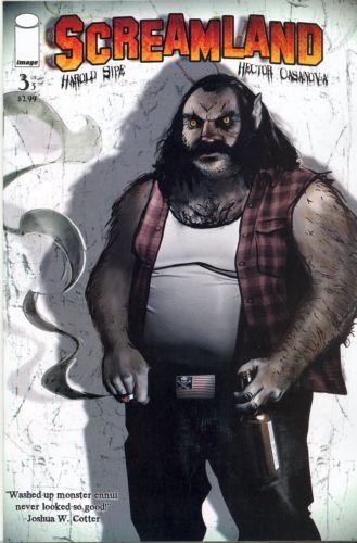 SCREAMLAND #3 (of 5) Story HAROLD SIPE art & cover HECTOR CASANOVA Now it's time for everyone favorite convention: BAR CON! Carl London, the Wolf-Man, barnstorms the Midwest comic-con scene with third-string aging sci-fi actors in tow. How can one help but party like a rock star at Kansas' PREMIER sports /hotel bar? Hard questions are asked: Does one drink 'in character?' If you buy your B-actor idol a drink, MUST he read your fan fiction? At the end of the night, the Wolf-Man faces a foe even his drunken, wolf-y prowess may be unable to defeat! TAG: 'Washed-up monster ennui never looked so good' - Joshua W. Cotter MAY 14 ? 32 PAGES ? FC ? $2.99