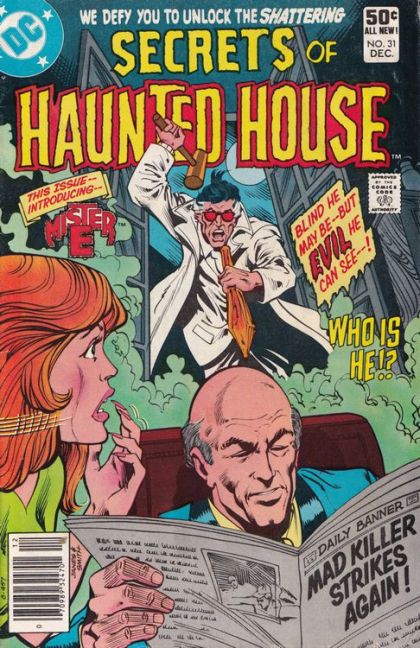 This issue: introducing Mister E! Blind he may be...but evil he can see! Who is he?! Featuring: 8 page Tales of Destiny story "The Twice-Cursed Man!" starring Mister E (intro), written by Bob Rozakis and drawn by Dan Spiegle; 1 page Destiny introductory story "Secrets of Haunted House" written by Jack C. Harris and drawn by Leopoldo Duranona; 7 page Destiny story "The Short-Road to Damnation" written by Arnold Drake and drawn by Tenny Henson; 1 page story "The Wish" by Dave Manak; 8 page Destiny story "The Morbidity Factor!" written by George Kashdan and drawn by J.J. Brozowski & Kim DeMulder. Cover by Jimmy Janes & Bob Smith. Cover price $0.50.