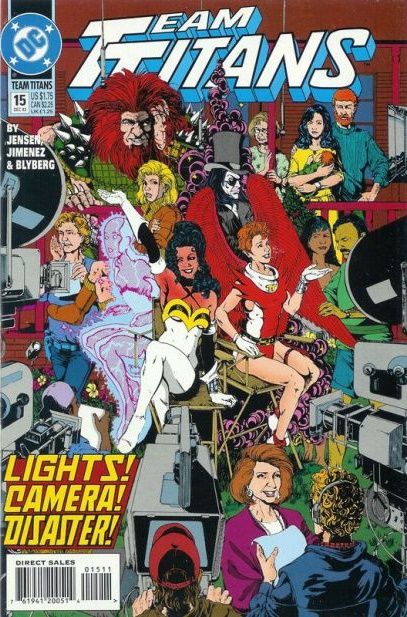 "The Hardest Copy, or Truth and Consequences!" Story by Jeff Jensen and Phil Jimenez. Art by Phil Jimenez, Steve Crespo, James Hodgkins, and Will Blyberg. In the aftermath of their battle with Clock King, Time Commander, Calendar Man, and Chronos in the mall last issue, the Team Titans are treated as heroes by the media. Let's hope all this fame and fortune doesn't go to the teens' heads. Cover price $1.75.