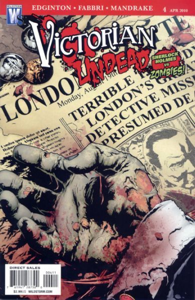 On sale February 24 ? 4 of 6 ? 32 pg, FC, $2.99 US Written by Ian Edginton ? Art by Davide Fabbri ? Cover by Simon Coleby Their hatred simmered for years in a cat-and-mouse game culminating in a vicious battle atop Riechenbach Falls. One man walked away alive. And the other walked away...undead! The story of Professor Moriarty and his connection to London's undead plague is revealed!