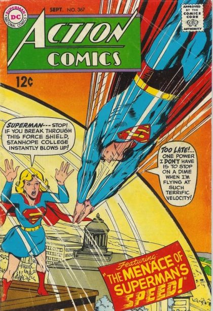 Supergirl exposes herself to Gold Kryptonite in hopes of destroying her powers, thus preventing the bomb at Stanhope from detecting them and detonating. Then she assumes her Linda Danvers identity, and tricks Alpha and Beta into letting her inside the barrier. The two female terrorists put her to work in a lab assisting David Carew, whom they have captured. Carew tells Linda that Alpha and Beta have told him he is destined in the future to create Noricon, a vaccine against all diseases, so they are forcing him to try and discover it now. Linda spurs Carew into creating a diversion that allows them to escape the lab. When David sees the Linda Danvers robot, Linda changes to her Supergirl costume, revealing her double identity and her plans to him. They head for the bomb, intending to dismantle it, but Alpha and Beta deduce their destination and come after them. Meanwhile, Superman wonders why Supergirl has not kept an appointment to meet him at the Fortress of Solitude. Seeing her plight with his super-vision, he flies to Stanhope and intends to crash through the barrier. Supergirl shouts a warning to her cousin, but he is moving too fast to stop himself in time.