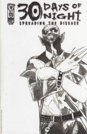 Cover by Nat Jones. Written by Dan Wickline. Art by Alex Sanchez. Crawling from the wreckage of 30 Days of Night: Dead Space is this latest five-part continuation of the 30 Days of Night saga. In part one of Spreading The Disease, Agent Michael Henson had all the evidence he needed to prove to the world that vampires exist... until the government took it all away. Now, urged on by a mysterious "friend," Henson must follow a path of carnage and gore in hopes of finding the answer to why anyone would want to put a vampire into space, with his only lead being to follow the fangs. Dan Wickline (30 Days of Night: Dead Space), Alex Sanchez (Doomed) and Jay Fotos (Clive Barker's The Great and Secret Show) bring you this stunning tale of mystery and horror, with alternate covers provided by Nat Jones (30 Days of Night 2005 Annual). Covers will be shipped in a 1-to-1 ratio. Mature readers, 32 pages, full color. Cover price $3.99.