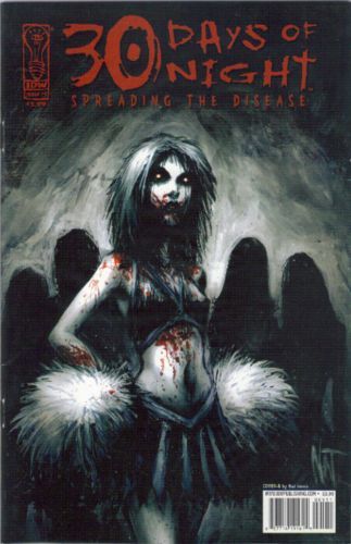 Cover by Nat Jones. Written by Dan Wickline. Art by Tony Sandoval. The enormity of Gant's plan stands revealed. Accompanied by ex-Navy Seals Gabe and Rafael, Agent Henson must race into a vampire-infested pit of horror if they hope of stopping the demented scheme. Will Reverend Gant and the New Children of God be able to turn the biggest event of the year turn into the biggest bloodbath of all time? Dan Wickline (30 Days of Night: Dead Space) and artist Tony Sandoval bring you the final horrific chapter of this latest 30 Days of Night tale! Mature readers, 32 pages, full color. Cover price $3.99.