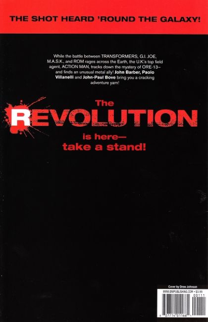REVOLUTION WORLDWIDE! While the battle between TRANSFORMERS, G.I. JOE, M.A.S.K., and ROM rages across the Earth, the U.K.'s top field agent, ACTION MAN, tracks down the mystery of ORE-13-and finds an unusual metal ally!