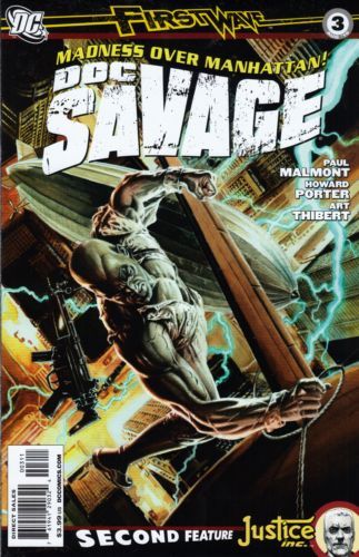Written by PAUL MALMONT Co-feature written by JASON STARR Art by HOWARD PORTER & ART THIBERT Co-feature art by SCOTT HAMPTON Cover by J.G. JONES 1:10 Variant cover by JOHN CASSADAY Doc Savage and his crew take the fight to the sinister mercenaries who've targeted them in a high-speed chase between two dirigibles in the canyons of Manhattan! You've never seen a dogfight like this before! In the Justice, Inc. co-feature, the Avenger is starting to lose control - and so is the mastermind behind Josh's kidnapping! If Benson thinks this nightmare can't get worse, he has no idea how wrong he is? And come back next month for the return of FIRST WAVE with issue #4!