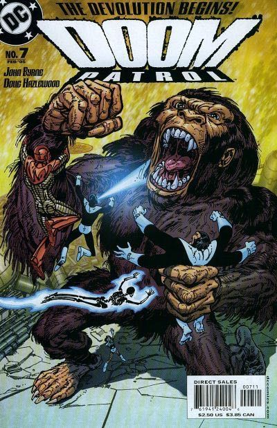 Written by John Byrne Art by Byrne & Doug Hazlewood Cover by Byrne. Part 1 of a new 2-part story! The Devolutionists strike, turning back the evolutionary clock on innocents the world over! The Doom Patrol is sent to intercept this new cult and their actions, only to find that what their team devolves into might be a bigger threat! On sale Dec 29 ? 32 pg, FC, $2.50 US Cover price $2.50.