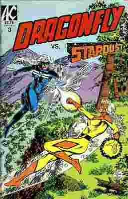 Dragonfly is still grieving the death of the boyfriend Ken Burton (consumed by Zzara as the price of the Dragonfly powers). Then she meets an alien! Aleyta is from the planet Rur, a deserter from her world's armed forces. Stardust and Captain Paragon return to Earth; Stardust is another Rurian, charged by her queen with returning the deserter for military trial. Naturally, Dragonfly has no interest in remanding her new friend to what is probably a death sentence, prompting a fight. And... something exhumes Ken Burton's body and carries it off, to do... what, exactly?