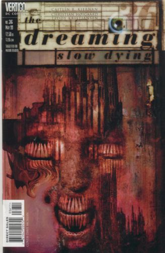 Cover art by Dave McKean. The Gyres Part One: "Slow Dying", script by Caitlín R. Kiernan, pencils by Christian Højgaard, inks by Teddy Kristiansen; Echo dies and enters Dreaming; sequel to The Girl Who Would Be Death. Promo for Veils graphic novel. 36 pgs. $2.50. Cover price $2.50.