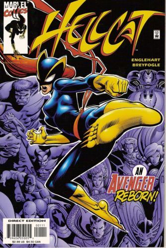 "One Life to Live!" - Debuting way back in 1944's MISS AMERICA MAGAZINE, Patsy Walker starred in a multitude of "soap opera" and "humor" titles through the late '60s, at which point Stan Lee brought her into the Marvel Universe with a cameo in FANTASTIC FOUR ANNUAL #3. Since her first appearance, the energetic and upbeat character has been many things, teen idol, super hero, even satanic bride, but now she's back from the great beyond and just wants to lead a quiet life. But the former Avenger and Defender will discover that she's become the prize in a hell-spawned contest which threatens to spill over into the earthy plane! She's young... she's undead... she kicks demon booty! Move over Buffy, here comes Hellcat!