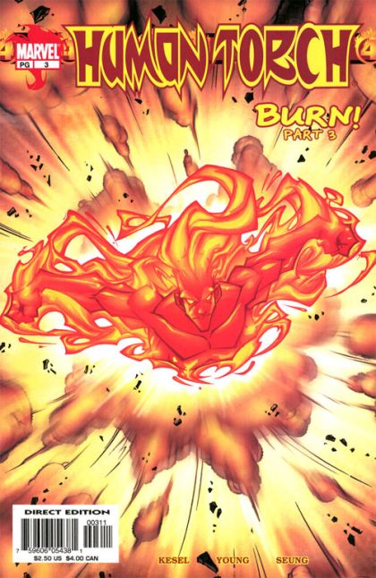 Burn: Part 3 of 6 - Cover by Skottie Young Karl Kesel (w)/Skottie Young (p) The 2K3 reinvention and reignition of Johnny Storm continues! 32 PGS. WITH ADS/FC/MARVEL PG Cover price $2.50.