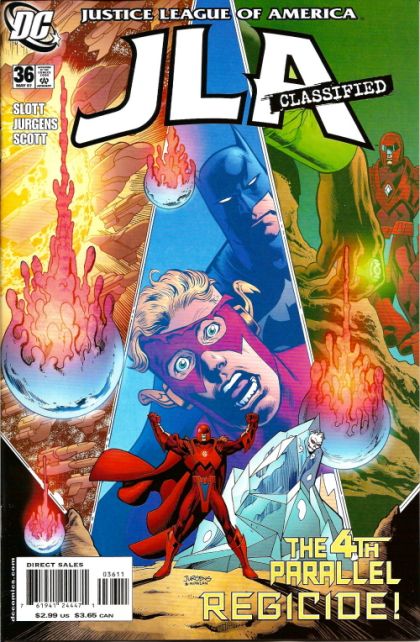 With the Red King having either conquered or destroyed the three alternate realities left in the Materioptikon, the Justice League on each of them struggles to find a way to defeat him. They eventually manage to get Plastic Man into the Materioptikon by sacrificing themselves and one of the realities, so that he can contact Dr Destony.The Batman in one of the realities contacts Dr Destiny who, in turn, is able to rely his messages to Plastic Man.The murderous Red King appears in the reality where he is a hero and fights his counterpart, trying to force him to merge with him. Before the murderous version kills him, the heroic version opens his mind to the Martian Manhunter, allowing him to use the information in his mind.With the murderous version triumphant, he and the League retreat to the moon where the Red King plans to kill them all; however, when he merged with his other version, he also absorbed some of the other's feelings for Wonder Woman which prevents him from harming her. Calling his bluff, the League manage to gain hold of the Materioptikon and force the Red King back into its pocket dimension. With Batman's help, Destiny is free within it and plans to gain his revenge on the Red King who is imprisoned with him.