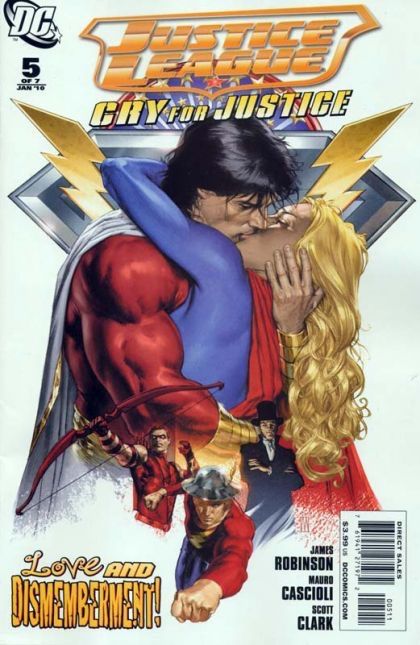 Written by James Robinson Art and cover by Mauro Cascioli Supergirl and Shazam join the team as Prometheus is finally captured! His evil machinations are revealed, but even so, the League may be unable to stop the villain's disturbing plans as he cuts down one of the members! Don't miss this shocking new issue that'll have everybody talking. On sale November 18 o 5 of 7 o 40 pg, FC, $3.99 US