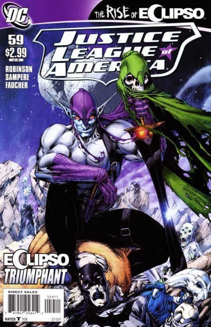 Written by JAMES ROBINSON Art by BERNARD CHANG Cover by BRETT BOOTH and NORM RAPMUND 1:10 Variant cover by DAVID MACK Eclipso is triumphant! He has defeated the world's greatest heroes, destroyed the moon and spit in the face of the greatest forces the universe. But one JLAer still stands. Can she make things right? Retailers please note: These issues will ship with two covers each. Please see the Previews Order Form for more information. On sale JULY 20 ? 32 pg, FC, $2.99 US ? RATED T