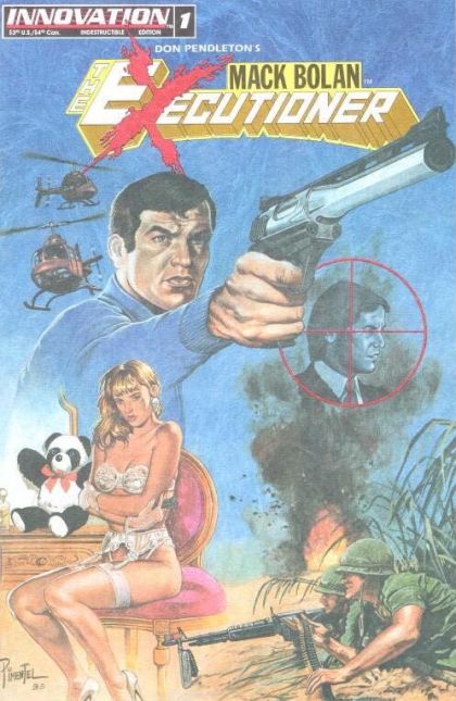 Before the Punisher and his war journal, there was Mack Bolan: The Executioner. Mack Bolan was created in 1969 by writer Don Pendleton and became the star of a popular series of adventure novels. Many years later, Pendleton himself volunteered to write the script for this comic book series from Innovation.