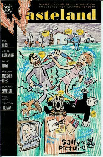 Want to get even weirder? Join writers John Ostrander and Del Close as they explore the vast reaches of the Wasteland. Joining them this issue is guest artist Tim Truman, along with regular Wasteland artists David Lloyd and William Messner-Loebs. Cover by Donald Simpson. Suggested for Mature Readers. Deluxe format. Cover price $1.75.