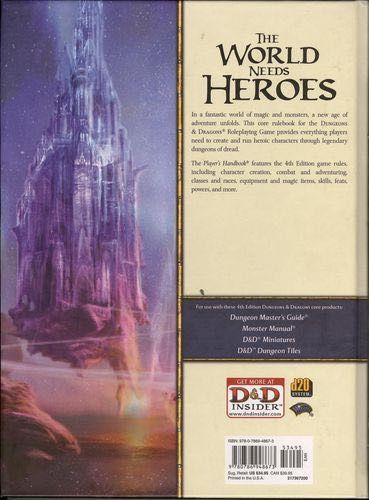 The first of three core rulebooks for the 4th Edition Dungeons & Dragons® Roleplaying Game. The Dungeons & Dragons Roleplaying Game has defined the medieval fantasy genre and the tabletop RPG industry for more than 30 years. In the D&D game, players create characters that band together to explore dungeons, slay monsters, and find treasure. The 4th Edition D&D rules offer the best possible play experience by presenting exciting character options, an elegant and robust rules system, and handy storytelling tools for the Dungeon Master. The Player's Handbook presents the official Dungeons & Dragons Roleplaying Game rules as well as everything a player needs to create D&D characters worthy of song and legend: new character races, base classes, paragon paths, epic destinies, powers, more magic items, weapons, armor, and much more.