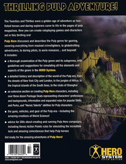 THRILLING PULP ADVENTURE!The Twenties and Thirties were a golden age of adventure as two-fisted heroes and daring explorers came to life in the pages of pulp magazines. Now you can create roleplaying games and characters set in this thrilling era! Pulp Hero discusses and describes the Pulp genre for gaming, covering everything from masked crimefighters, to globetrotting adventurers, to daring pilots, to eerie menaces... and beyond! It shows how to create characters, campaigns, abilities, weapons, and other elements of the genre using the HERO System rules. It includes: -a thorough examination of the Pulp genre and its subgenres, with guidelines and suggestions for simulating all the elements and aspects of the genre in the HERO System.-a month-by-month timeline of the 1920-39 period, with items arranged by subject for easy reference-a detailed description of the world of the Pulp era, from the streets of New York City and London, to the jungles of Africa, to the tropical islands of the South Seas, to the clubs of Shanghai-an extensive section on creating Pulp Hero characters, including over three dozen Package Deals representing characters? professions and backgrounds, information and expanded rules for popular Skills and Perks, and ?Heroic Talents? abilities for Pulp characters-the guns, vehicles, and gear of the Pulp era ? including the amazing creations of Weird Science!-advice for GMs about creating and running Pulp Hero campaigns, including Heroic Action Points rules for simulating the incredible luck and amazing coincidences that help Pulp heroesGet ready for the amazing adventures of Pulp Hero!
