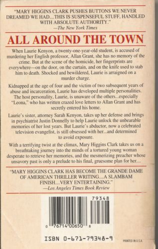 Mary Higgins Clark, the Queen of Suspense, crafts a terrifying story of murder and obsession with "a slambam finish" (Los Angeles Times Book Review).ALL AROUND THE TOWN When Laurie Kenyon, a twenty-one-year-old student, is accused of murdering her English professor, she has no memory of the crime. Her fingerprints, however, are everywhere. When she asks her sister, attorney Sarah, to mount her defense, Sarah in turn brings in psychiatrist Justin Donnelly. Kidnapped at the age of four and victimized for two years, Laurie has developed astounding coping skills. Only when the unbearable memories of those lost years are released can the truth of the crime come out -- and only then can the final sadistic plan of her abductor, whose obsession is stronger than ever, be revealed.