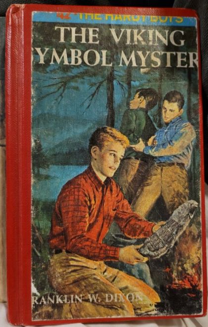 The Canadian Northwest beckons Frank and Joe Hardy to mystery and adventure. It all starts when a French-Canadian trapper, Caribou Caron, makes a historical and valuable find -- a carved rune stone left by Vikings centuries ago near Great Slave Lake. When Caribou Caron attempts to sell the artifact to a representative of a museum, it is snatched by thieves. Like the intrepid Vikings of old, Frank and Joe, with their close pal, Chet Morton, set off on a perilous quest in the Northwest Territories to recover the valuable artifact before the robbers can decipher the runic symbols telling the location of a buried treasure. A series of dangerous obstacles confront the boys as they scour the lake-dotted northland by plane and trek through the vast wilderness searching for the elusive criminals. By clever deduction and dogged determination the young sleuths pinpoint the robbers' hideout and close in for the showdown, only to be imperiled by an onrushing herd of stampeding buffalo. Again, Franklin W Dixon has woven a suspense-filled story that will thrill his worldwide legion of fans. - Flyleaf.