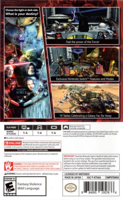Star Wars Pinball is the first Star Wars game releasing on the Nintendo Switch platform. Star Wars Pinball will debut with its entire collection of 19 digital pinball tables that span all three Star Wars eras, and will take full advantage of the Nintendo Switch's unique functionalities, like HD Rumble and vertical play orientation.