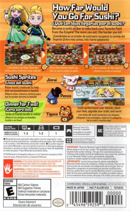 Win the ultimate food fight in Sushi Striker: The Way of Sushido on Nintendo Switch! In this quick-fire action-puzzle game, match coloured plates and types of sushi to build powerful attacks to hurl at the enemy.